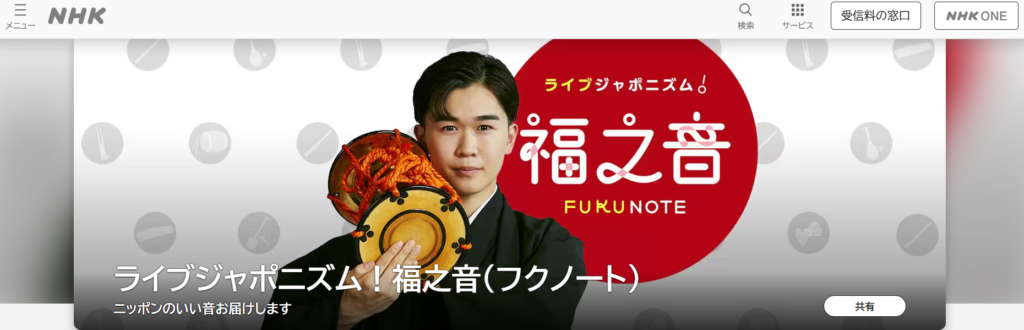 2026年4月1日 / 最終更新日時 : 2026年4月1日 akihitiobama108 Radio ラジオ NHK-FM「ライブジャポニズム!福之音」 〈番組名〉 NHK-FM「ライブジャポニズム!福之音」 〈放送日〉 第1回:2026年5月16日(土)11:00~11:20 第2回:2026年5月23日(土)11:00~11:20 〈出演〉 鈴木福(パーソナリティー)/小濱明人(尺八) スタジオ収録ゲスト=堀越彰(Ds.)/石川高(笙) 〈番組詳細〉 ⇒ ホームページ 〈聞き逃し配信〉 ⇒ らじる★らじる